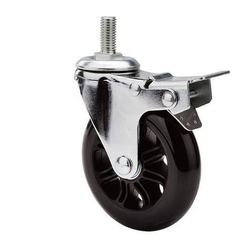 4インチロックキャスターホイール付きPUホイールM10ねじ付きステムキャスターキャビネットまたはカート用