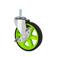 4 inch màu xanh lá cây TPR im lặng Caster phanh với 3/8 ren STEM đồ nội thất quần áo Kệ bánh xe